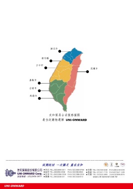 新北市 新竹縣 台中市 花蓮市 嘉義市 台南市 高雄市 友和貿易全省服務據點 最佳的購物選擇 UNI-ONWARD …………………………………………………………………………………………………………………... 試劑耗材 一次購足 盡在友和 UNI-ONWARD